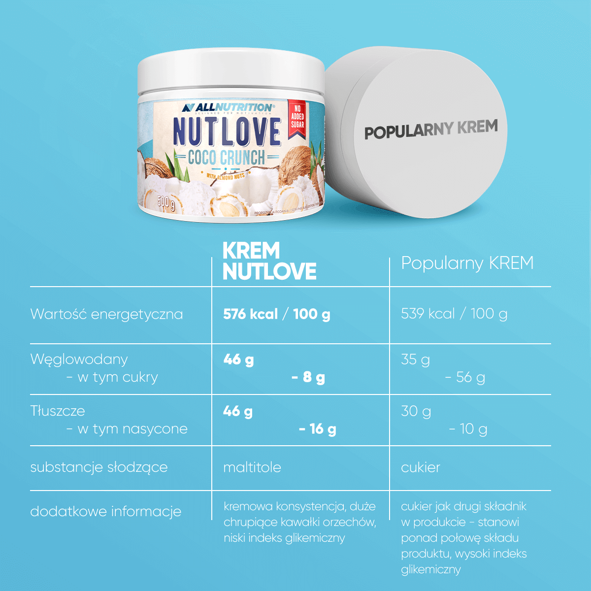 Opinie o Allnutrition NutLove Coco Crunch Krem Kokosowy z Migdałami 500g